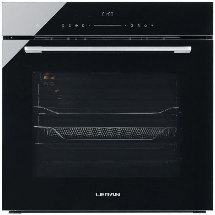 Встраиваемый электрический духовой шкаф Leran EOT 6795 BG в элегантном черном цвете сочетает стильный дизайн и передовые технологии для комфортного использования. Модель оснащена полностью сенсорным управлением и системой плавного закрывания дверцы.