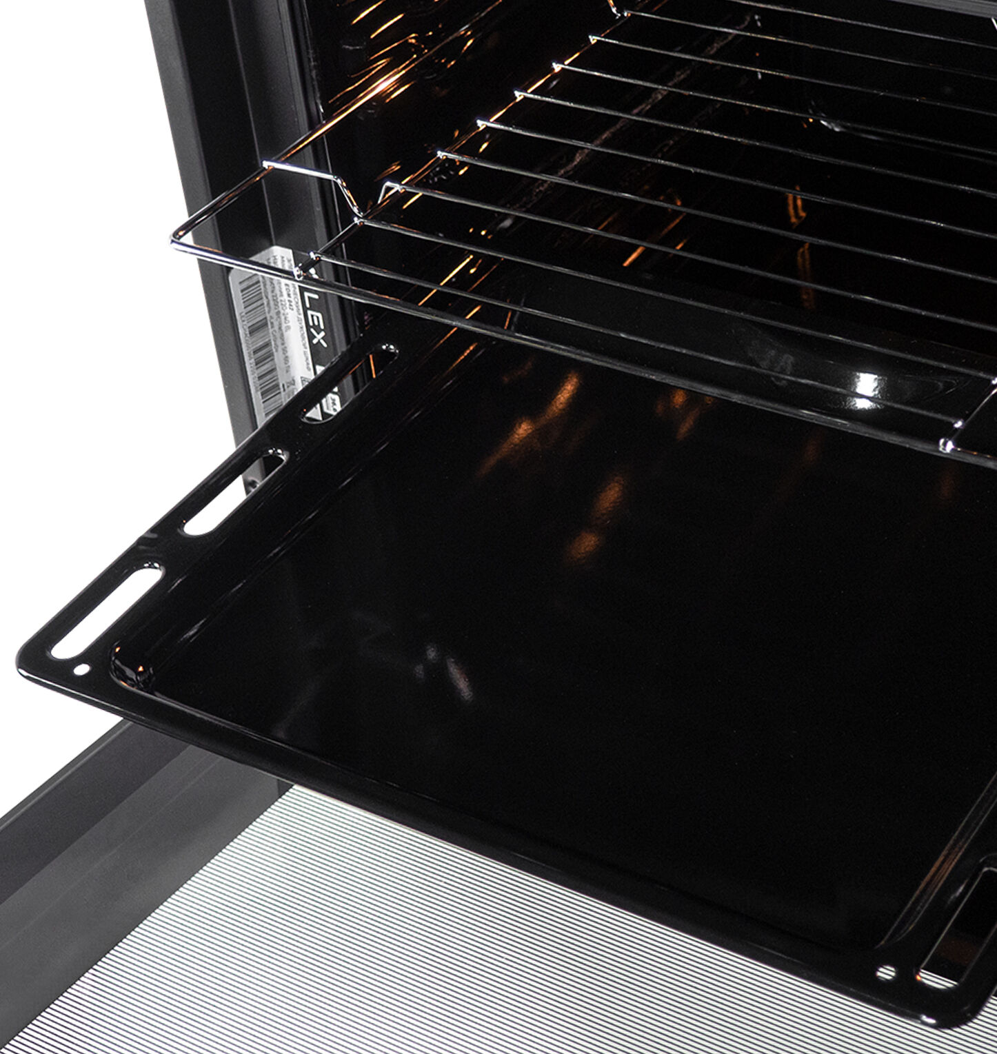 - Стандартные направляющие и противни в комплекте – комплектация включает противни размером 45×36.5 см, что позволяет сразу приступить к приготовлению.