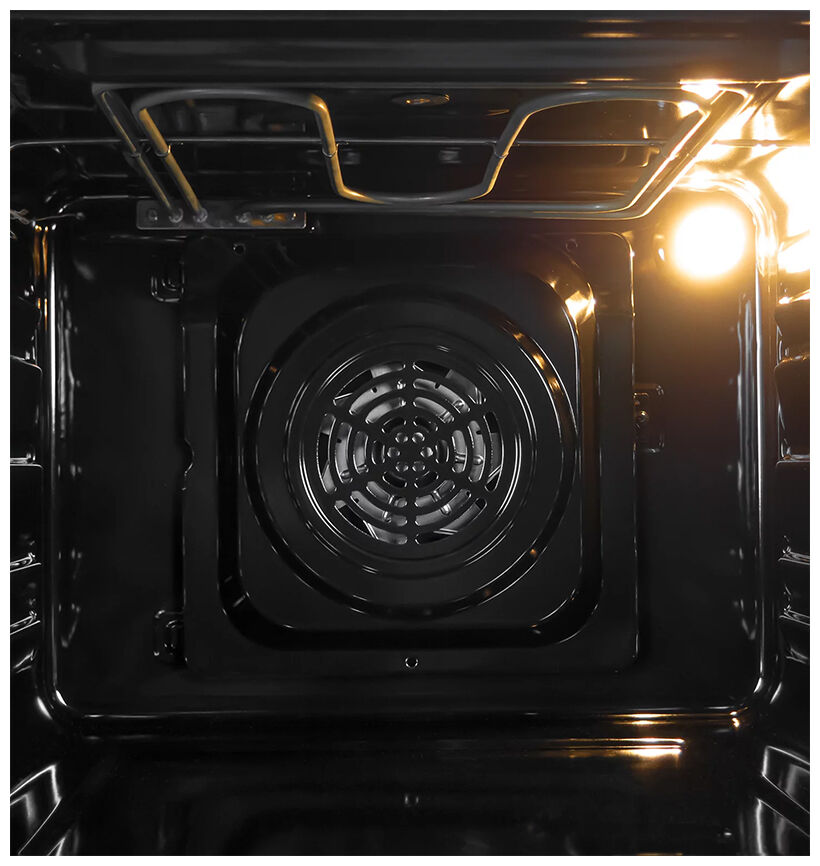 - Равномерное распределение тепла с конвекцией – благодаря режиму рециркуляции горячий воздух равномерно распределяется по всему внутреннему объёму духовки, обеспечивая идеальное пропекание блюд на любом уровне.