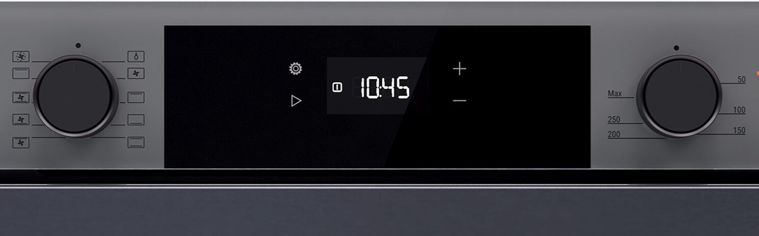 - Универсальный серый дизайн с широкой ручкой – элегантный серый цвет со стеклянной отделкой и стильная широкая ручка придают духовке современный и изысканный вид, гармонирующий с любым интерьером.