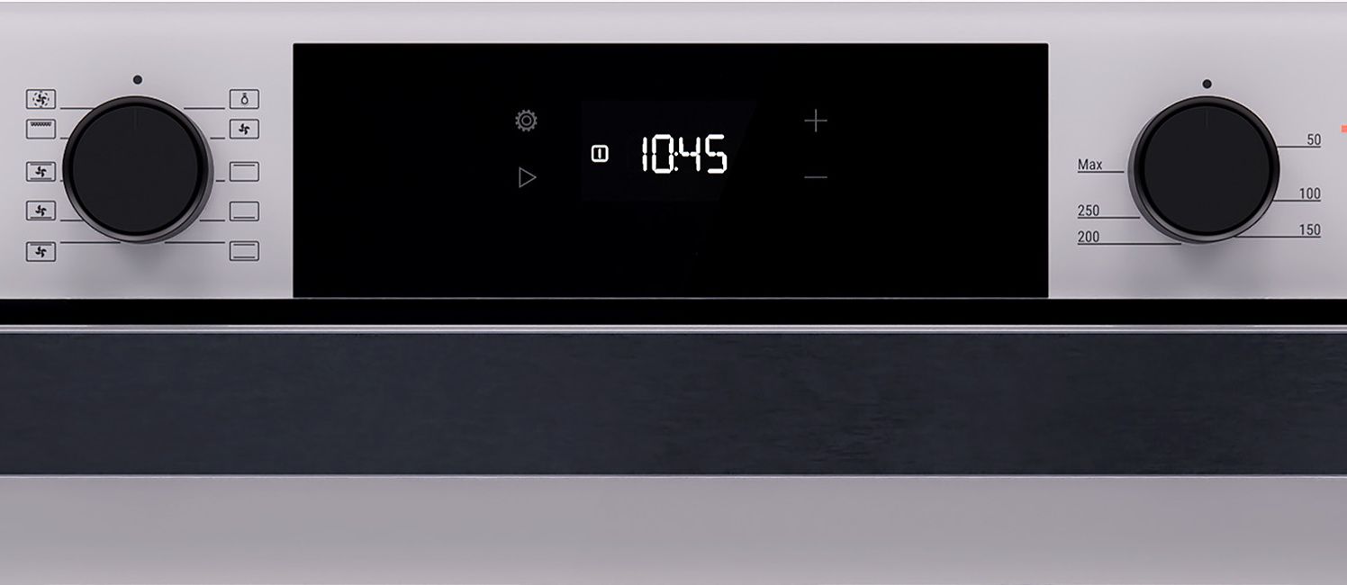 - Современное управление – гибридная система с LED-дисплеем и утапливаемыми регуляторами