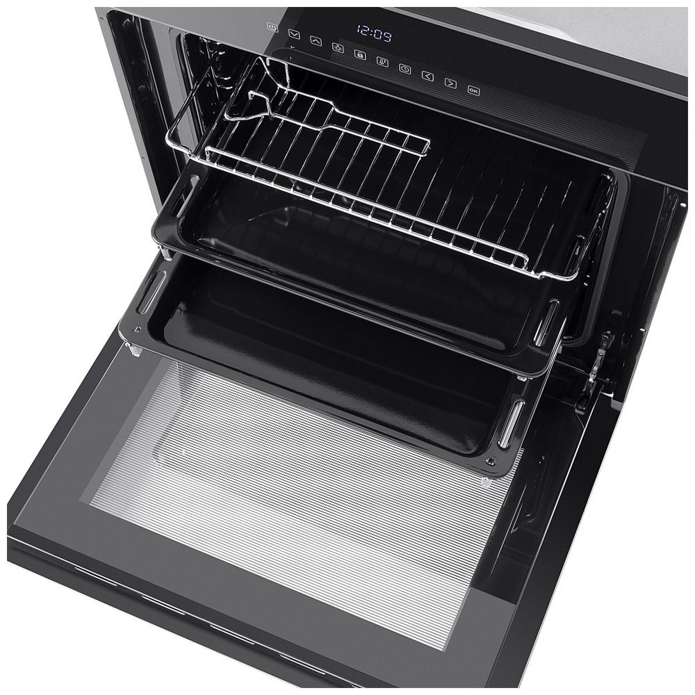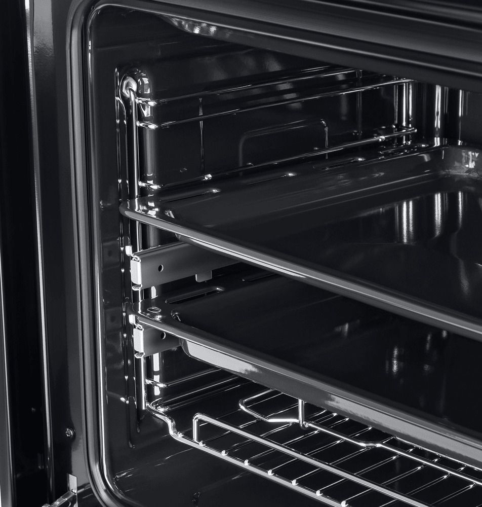 - Телескопические направляющие – два уровня оснащены системой плавного выдвижения для безопасного извлечения противней даже при полной загрузке.