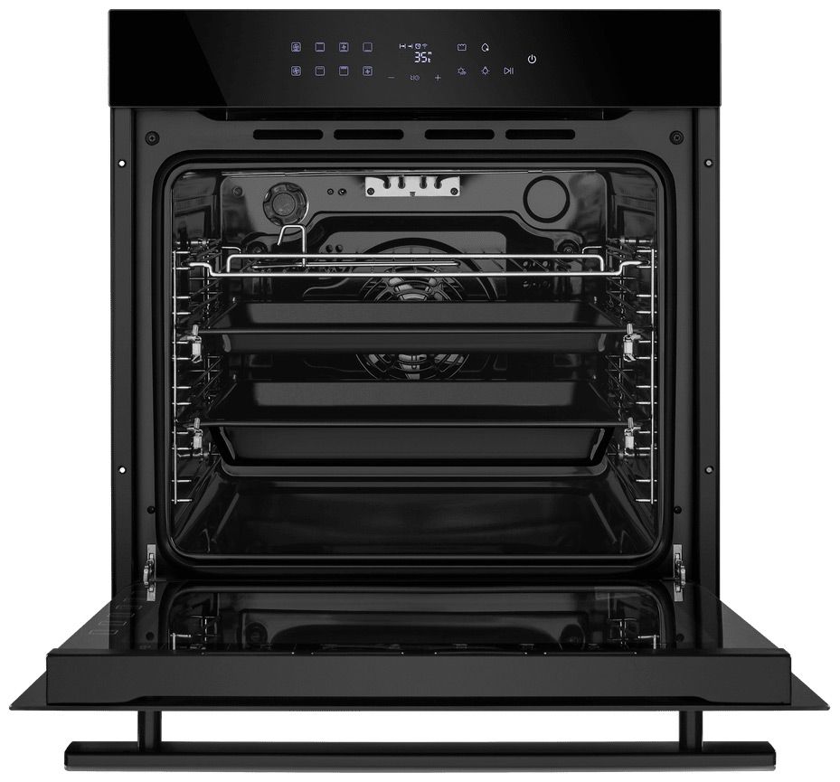 Встраиваемый электрический духовой шкаф Maunfeld EOEH.7611SCB в черном стекле сочетает лаконичный дизайн и передовые технологии для профессионального результата. Модель оснащена полноценной сенсорной панелью, системой плавного закрывания дверцы и тройным остеклением.