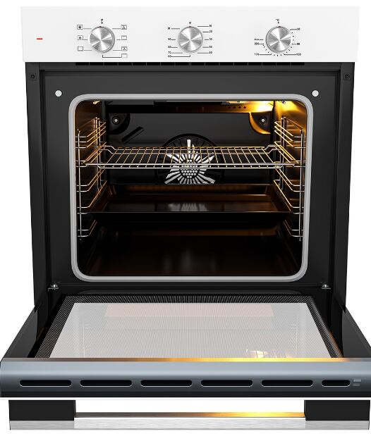 - Эксклюзивный белоснежный дизайн с отделкой стеклом – элегантный белый цвет в сочетании с отделкой из стекла придаёт духовому шкафу изысканный и современный вид. Модель становится стильным акцентом кухни, гармонично вписываясь в любой интерьер.