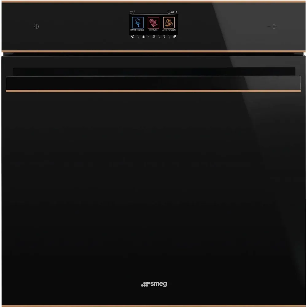 Электрический духовой шкаф Smeg SO6604M2PNR из коллекции Dolce Stil Novo – это сочетание элегантной эстетики, продуманной эргономики и передовых технологий. Чёрная фасадная панель в сочетании с медной фурнитурой создаёт благородный контраст и добавляет интерьеру тепла, а внутренняя камера объёмом 68 литров с 20 режимами работы, 150 автоматическими программами и функцией СВЧ делает этот прибор достойным центром любой кухни.