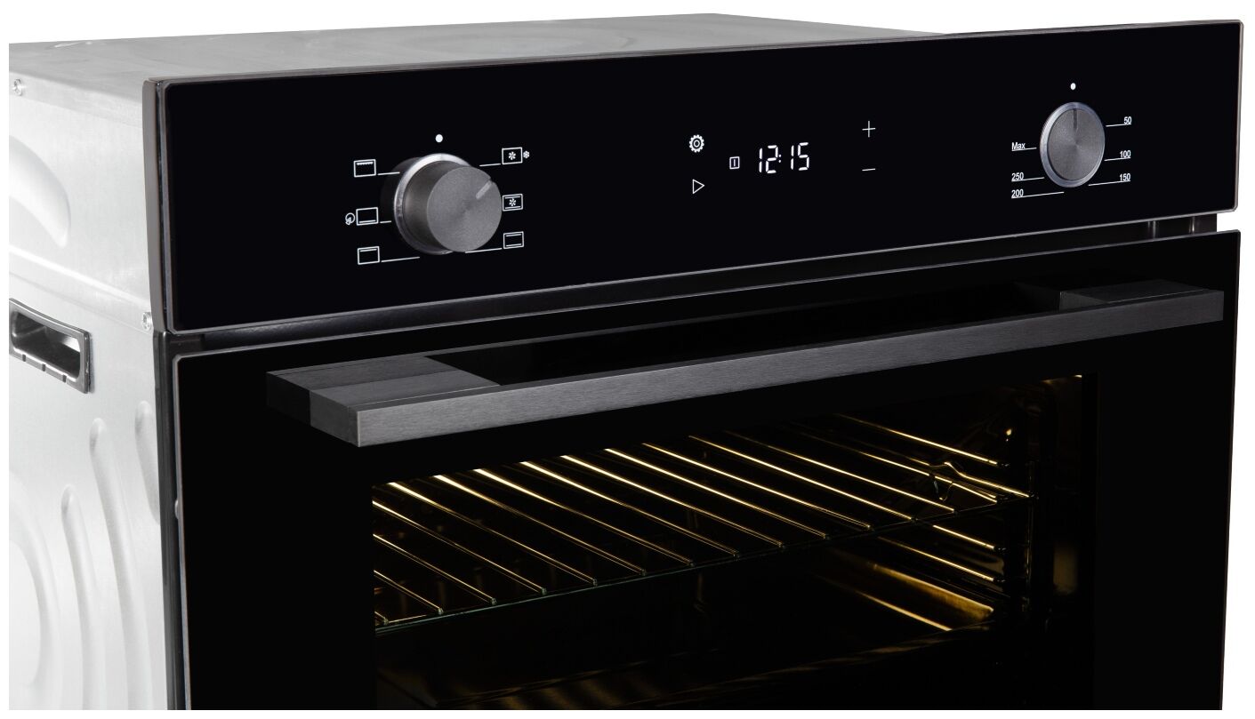 Электрический духовой шкаф Zigmund & Shtain E 159 B – 72 л, технология Black Mirror, телескопические направляющие и доводчик дверцы