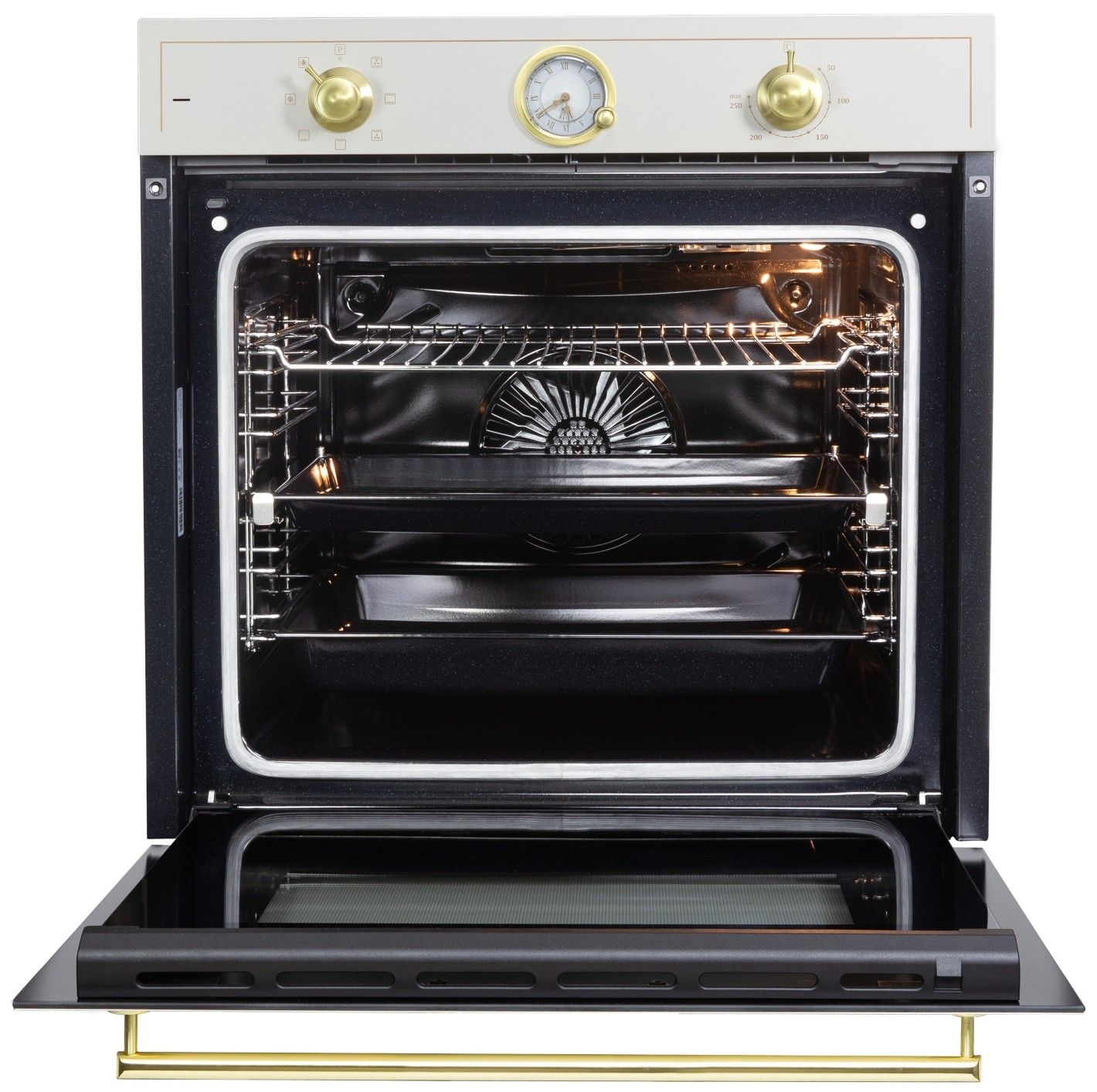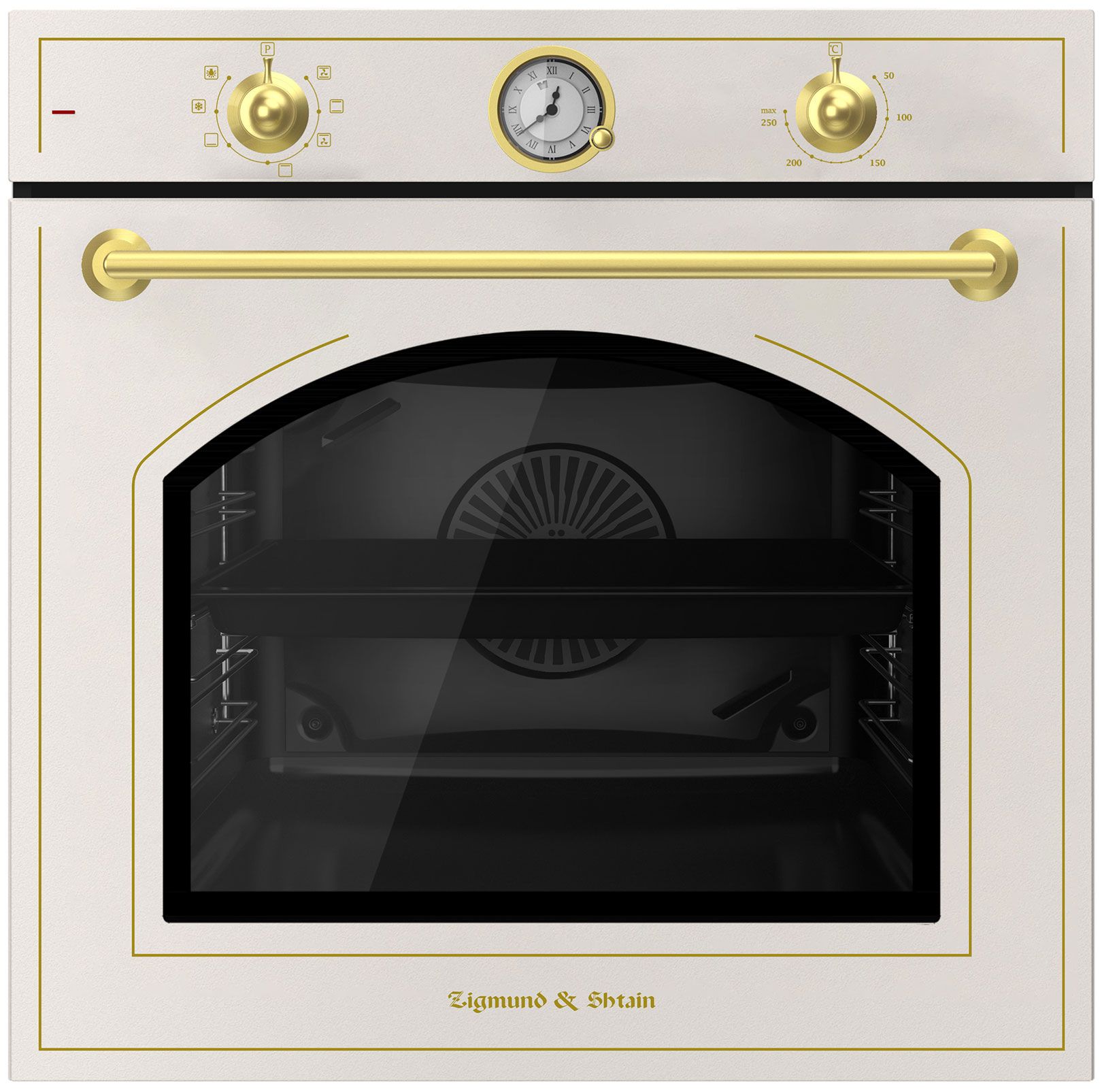 Встраиваемый электрический духовой шкаф Zigmund & Shtain E 166 X воплощает классическую эстетику с современным технологическим оснащением. Модель выполнена в характерном бежевом цвете с элементами под матированное золото и панорамным остеклением авторской формы.
