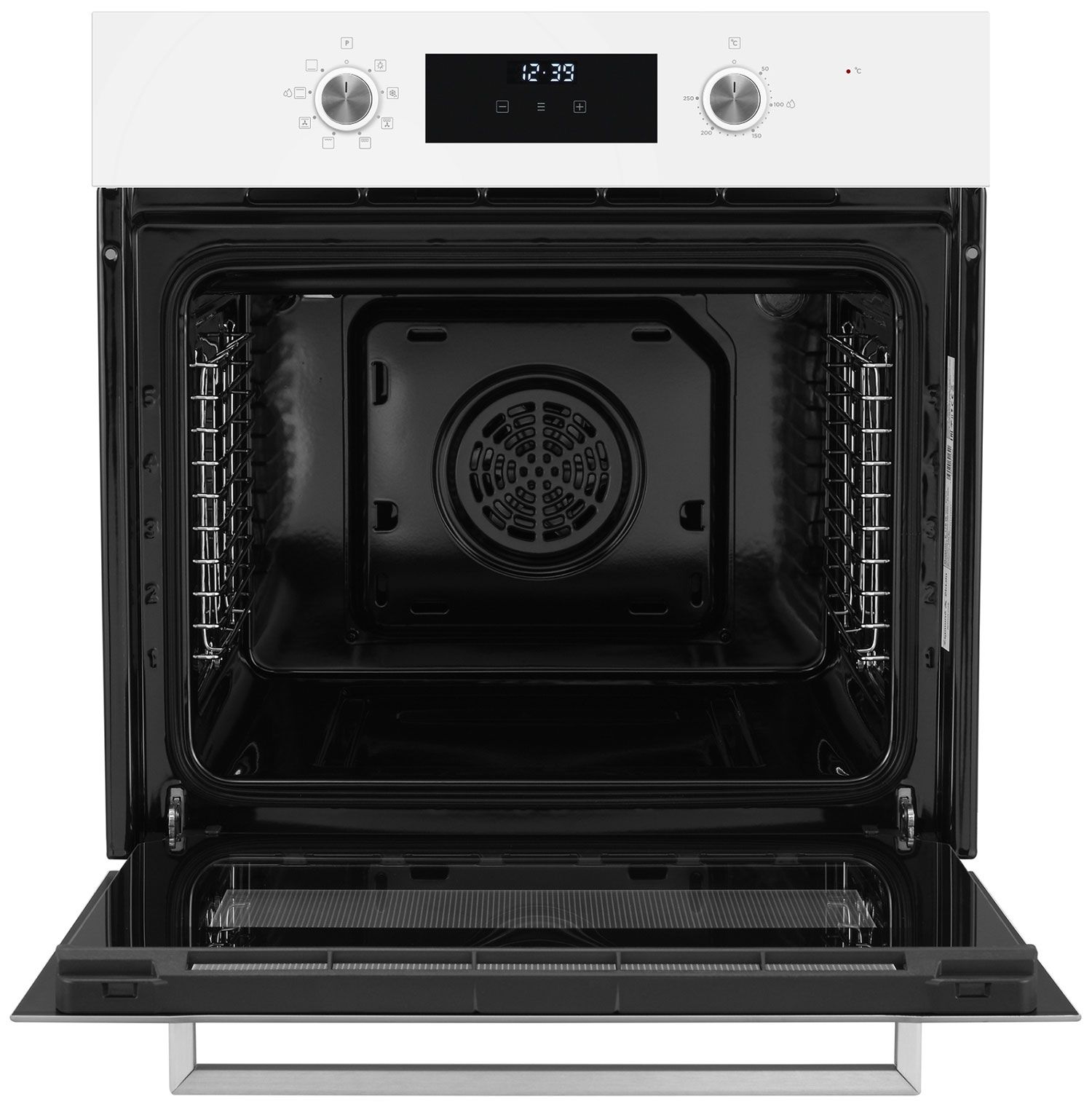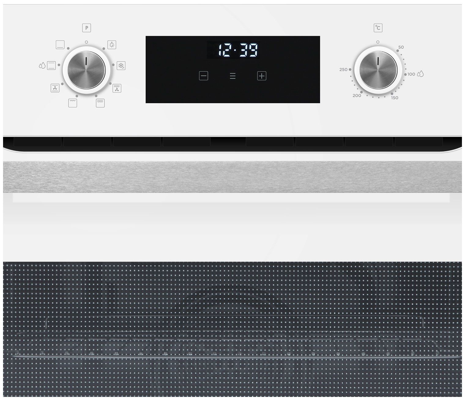 Встраиваемый электрический духовой шкаф Zigmund & Shtain E 177 W в белом цвете сочетает современный дизайн и расширенный функционал для комфортного приготовления. Модель оснащена интуитивной панелью управления с сенсорным дисплеем и поворотными переключателями.
