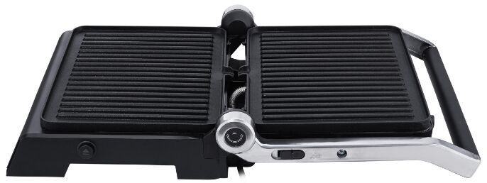 - Трансформация и лёгкий уход – панели раскладываются на 180 градусов, создавая единую рабочую поверхность почти 30×23 см. Все съёмные элементы выполнены из литого алюминия с антипригарным покрытием EcoDeff и безопасны для мытья в посудомоечной машине.