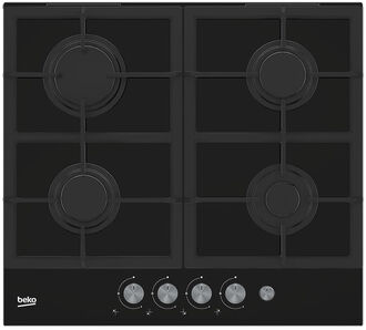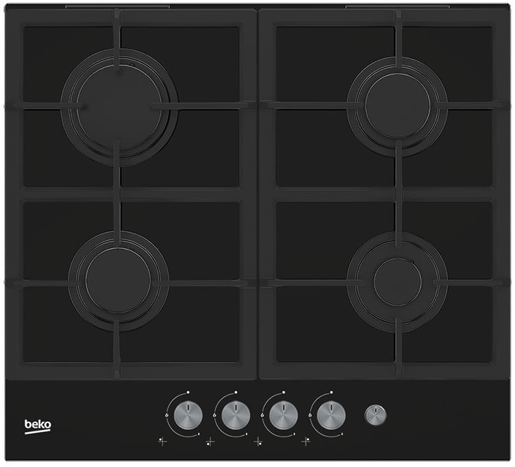 Газовая варочная панель Beko HILG64235S – чёрное закалённое стекло, WOK-конфорка 2.9 кВт и чугунные решётки