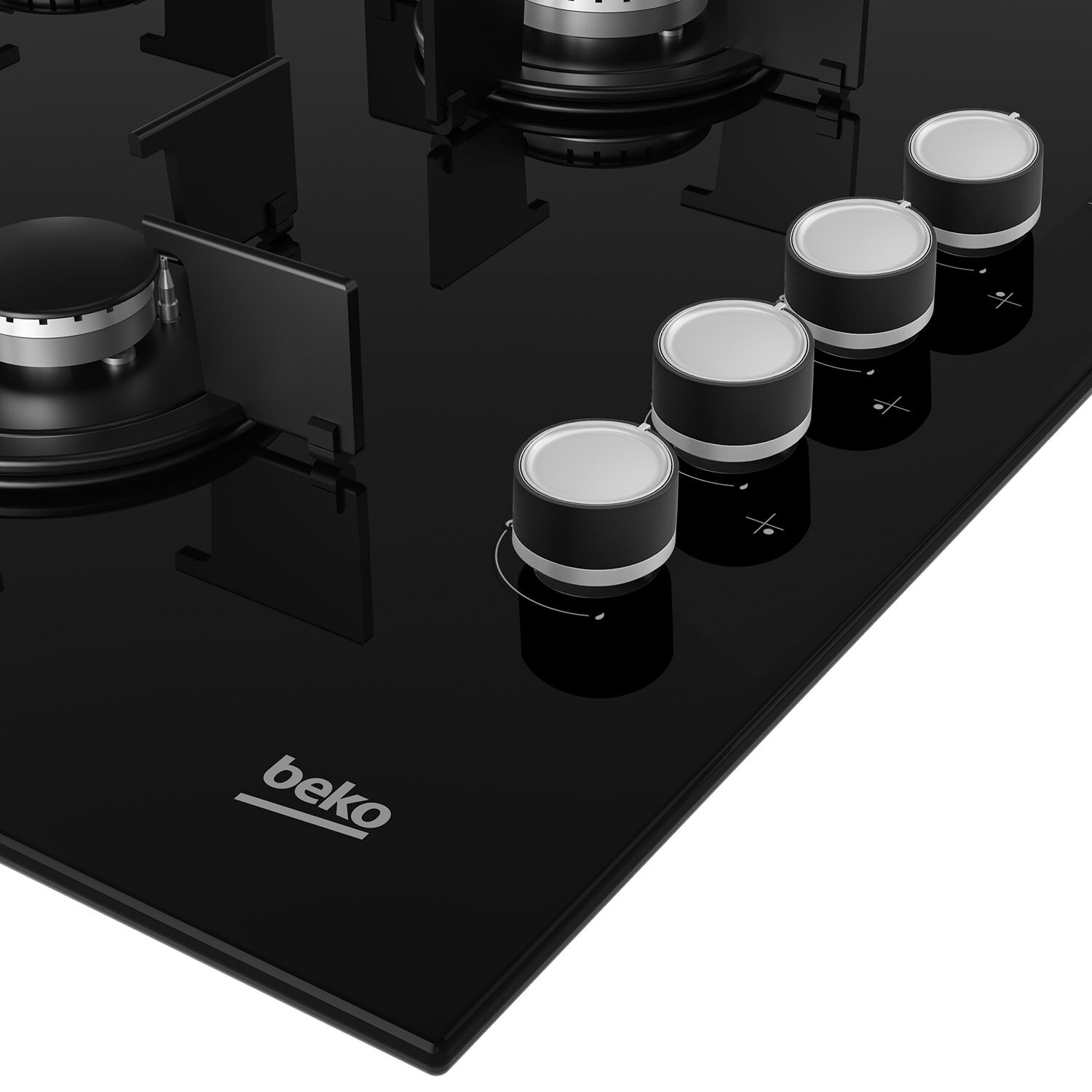 Газовая варочная панель Beko HILG64120S – чёрное закалённое стекло, WOK 2.9 кВт и адаптер для кофейника