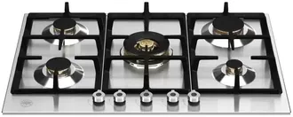 Газовая варочная панель Bertazzoni P755CPROX из линейки Professional – это надёжное и функциональное решение из нержавеющей стали с металлическими ручками управления. Модель шириной 75.2 см оснащена 5 газовыми конфорками разной мощности, включая центральную WOK-горелку с двумя рядами пламени (4 кВт), латунными горелками и чугунными решетками.