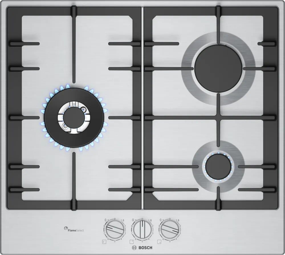 Газовая варочная панель Bosch PCC6A5I90 – профессиональная 3-конфорочная панель с WOK-конфоркой 4 кВт