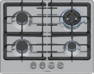 Встраиваемая газовая панель Bosch PGH6B5K90R из нержавеющей стали сочетает инновационные технологии и лаконичный дизайн серии 4. Модель оснащена беспороговой поверхностью и моющимися чугунными решетками для безупречной гигиены.