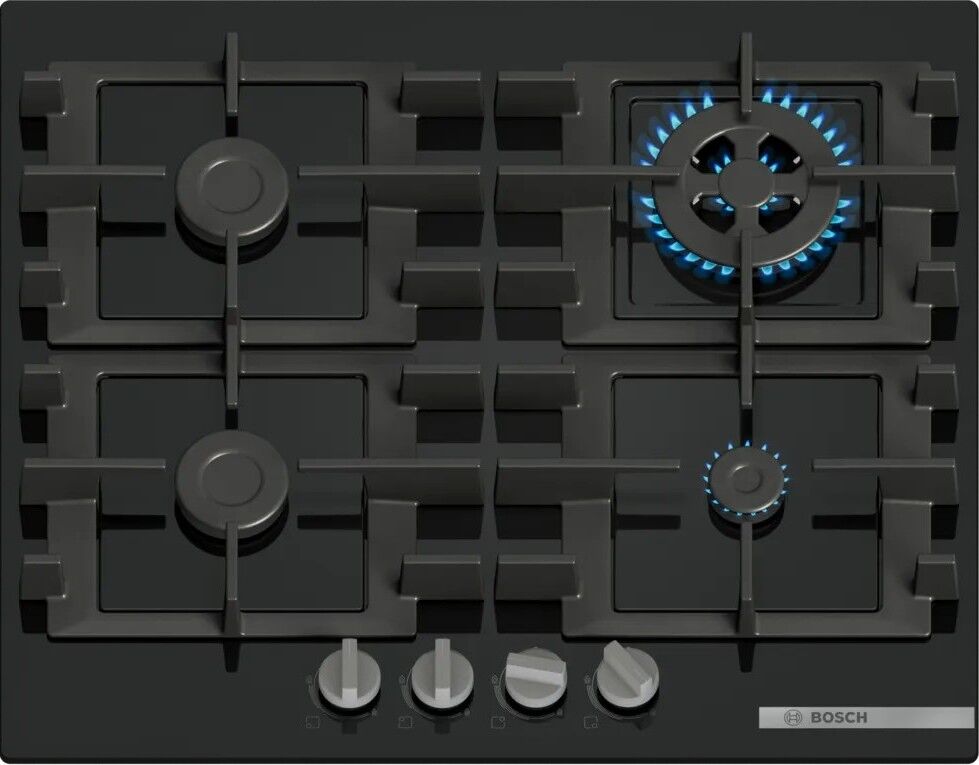 Газовая варочная панель Bosch PNH6B6K40 – стильная черная стеклянная панель с WOK-конфоркой 3.3 кВт