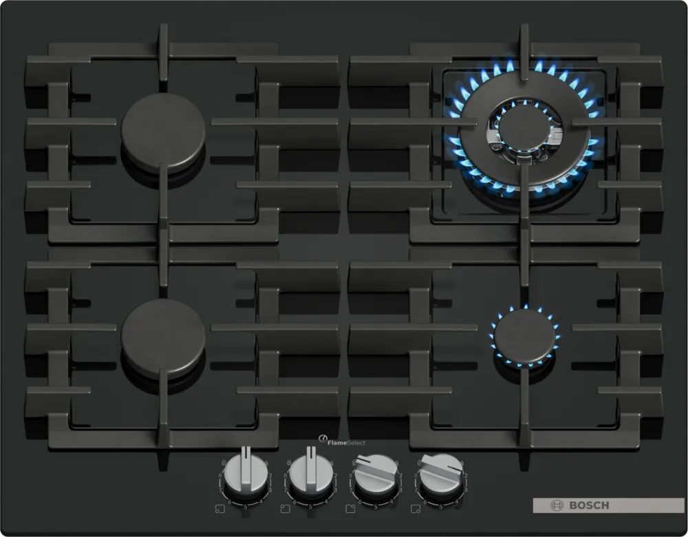 Газовая варочная панель Bosch PPH6A6I40O – мощная WOK-конфорка 3.5 кВт и 9 ступеней регулировки пламени