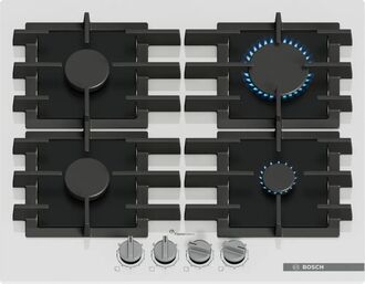 Газовая варочная панель Bosch PPP6A2I40R – белая стеклянная элегантность с конфоркой 3 кВт в серии Serie | 6