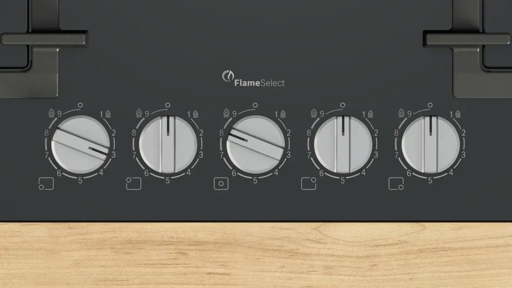 Система точной регулировки FlameSelect. Предоставляет 9 ступеней мощности пламени для филигранного контроля температуры на каждой конфорке.
