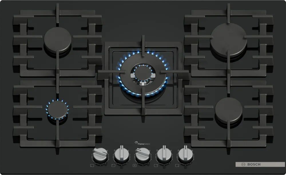 Газовая варочная панель Bosch PPQ7A6I45 – широкая 5-конфорочная панель с WOK и монтажом вровень со столешницей