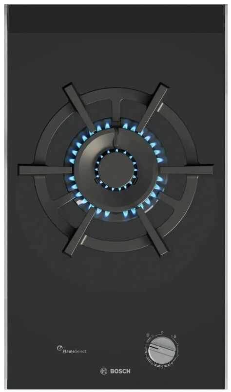 Газовая варочная панель Bosch PRA3A6I10 – компактный формат Домино: двухконтурная WOK-конфорка 6 кВт, автоматический электроподжиг и газ-контроль