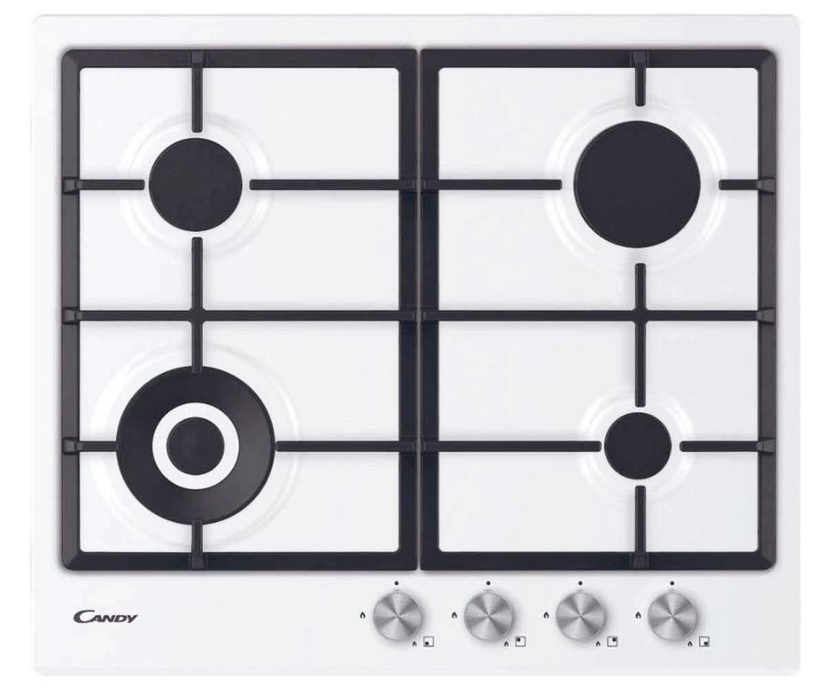 Газовая варочная панель Candy CHG6BF4WPXWRU – белая эмаль, конфорка 4 кВт с двойным пламенем и чугунные решётки