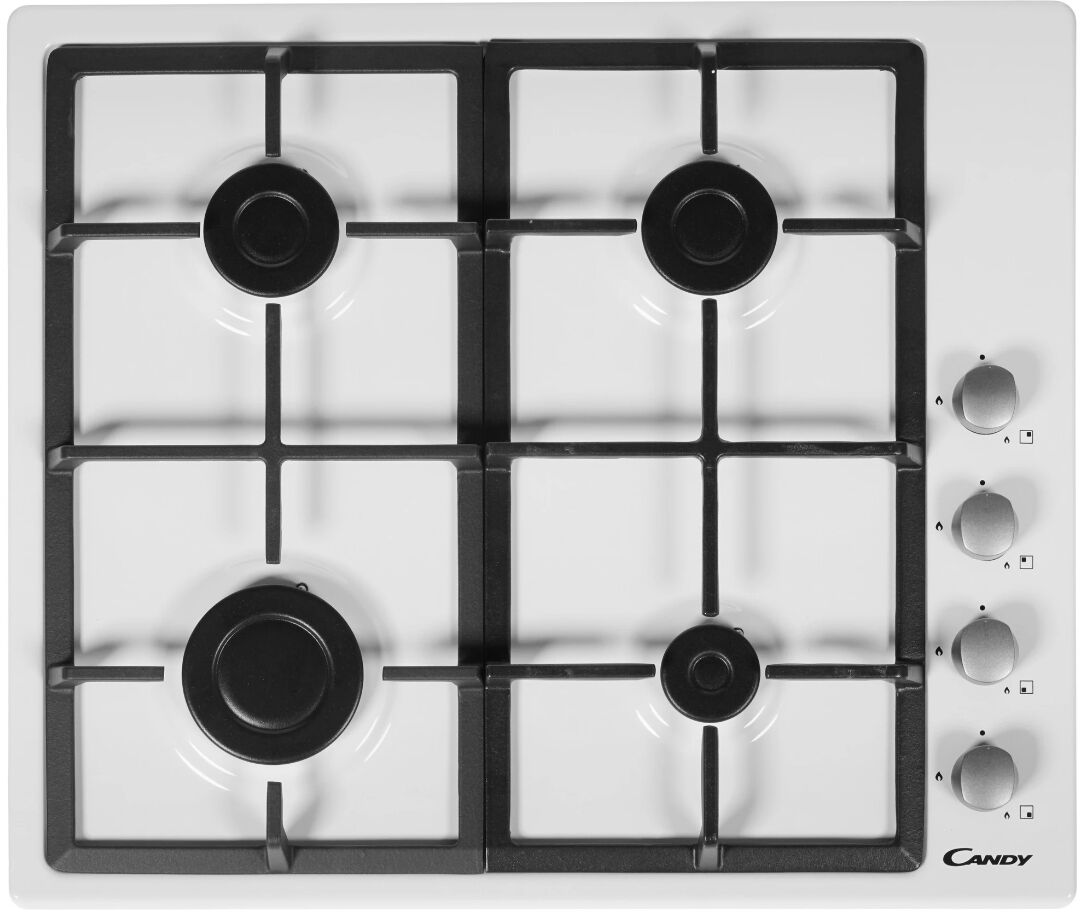 Газовая варочная панель Candy CHG6LW – белая эмаль, 4 конфорки, чугунные решётки и полная безопасность