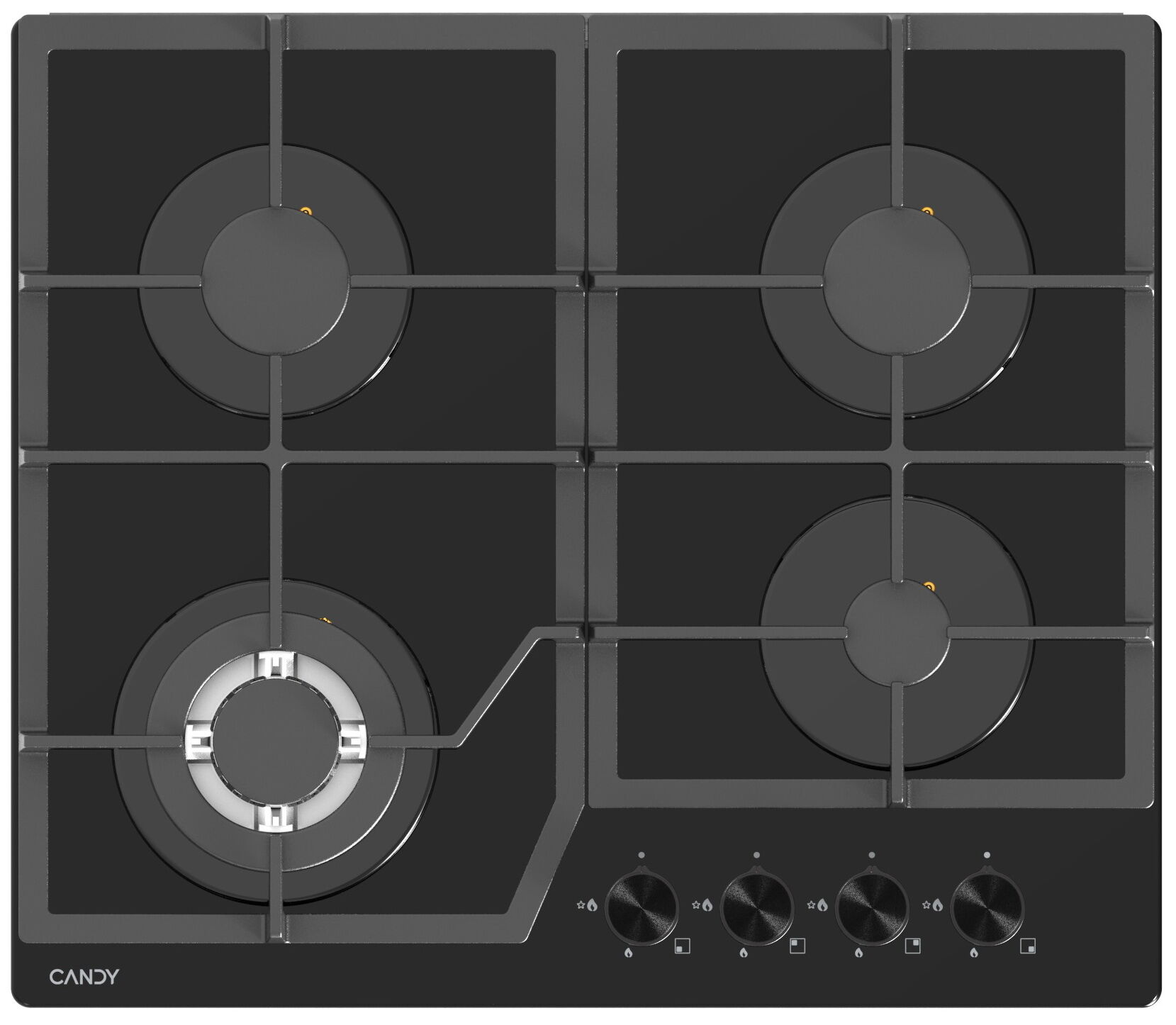 Газовая варочная панель Candy CHXG64CWB – чёрная, 58 см, WOK-конфорка 3.8 кВт и чугунные решётки
