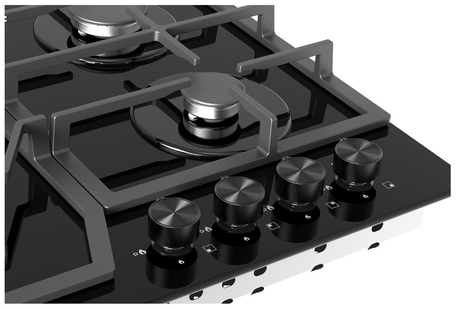 - Автоматический газ-контроль на всех конфорках – встроенная система безопасности автоматически отключает подачу газа, если пламя случайно погаснет, обеспечивая безопасность вашего дома.