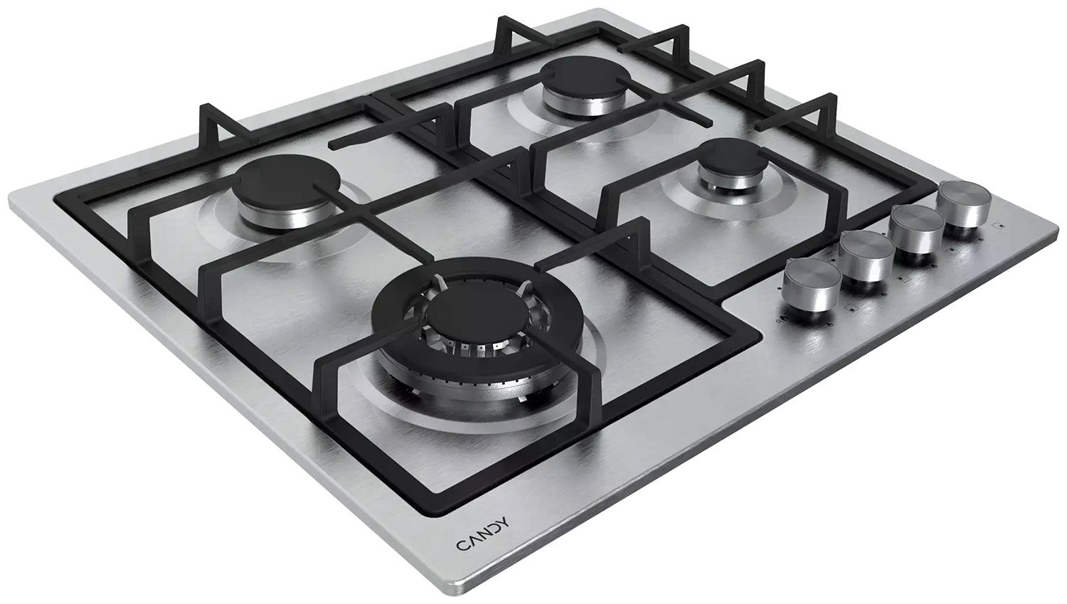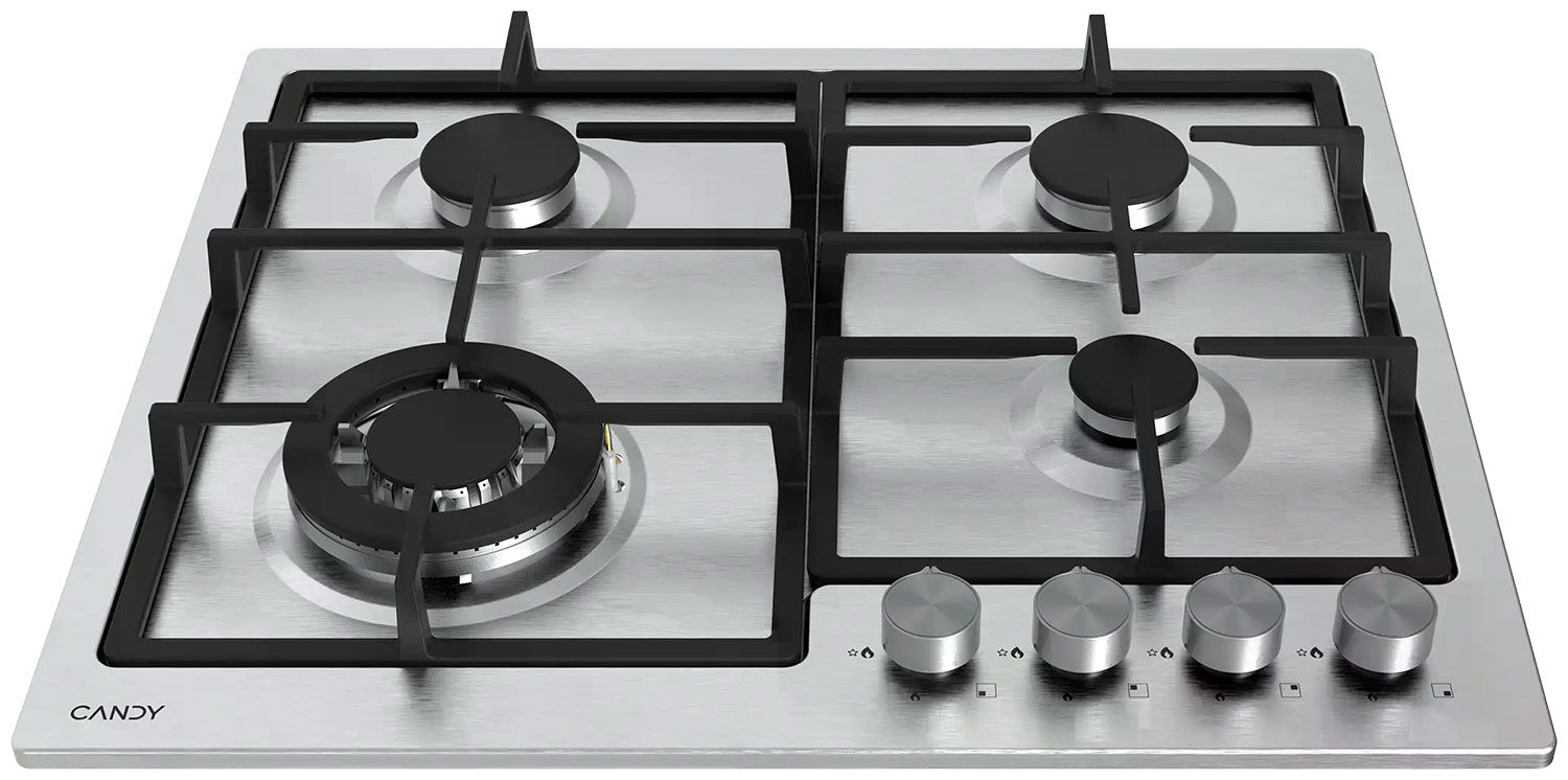 Газовая варочная панель Candy CHXM64CWX – нержавеющая сталь, WOK-конфорка 3.8 кВт и чугунные решётки