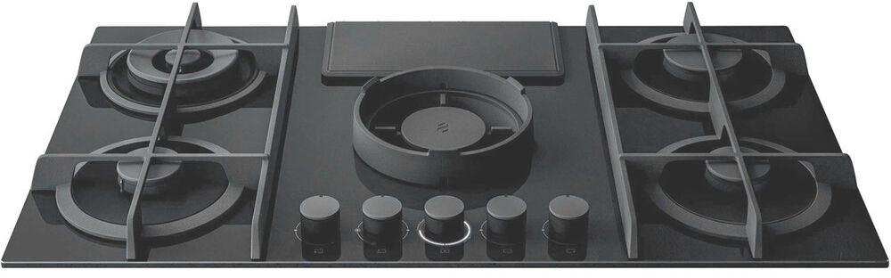 Премиальная газовая панель 88 см с 4 конфорками (включая горелку с тремя рядами пламени для WOK) и встроенной вытяжкой с автоматическим управлением