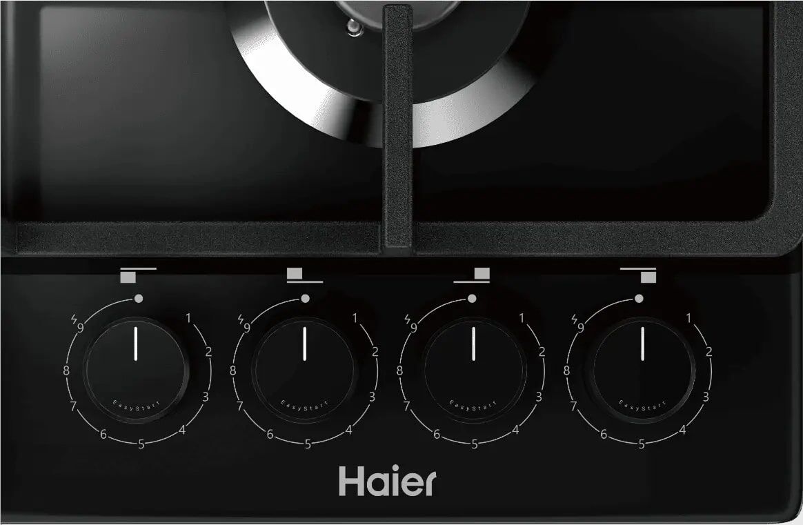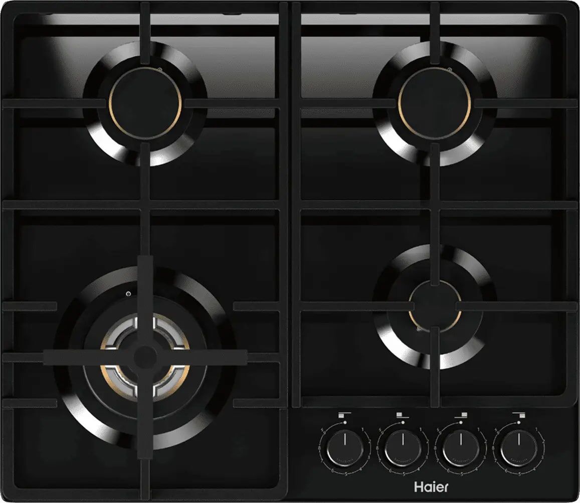 Газовая варочная панель Haier HHQ-G64CAQB – эксклюзивный дизайн с латунными акцентами на черном стекле