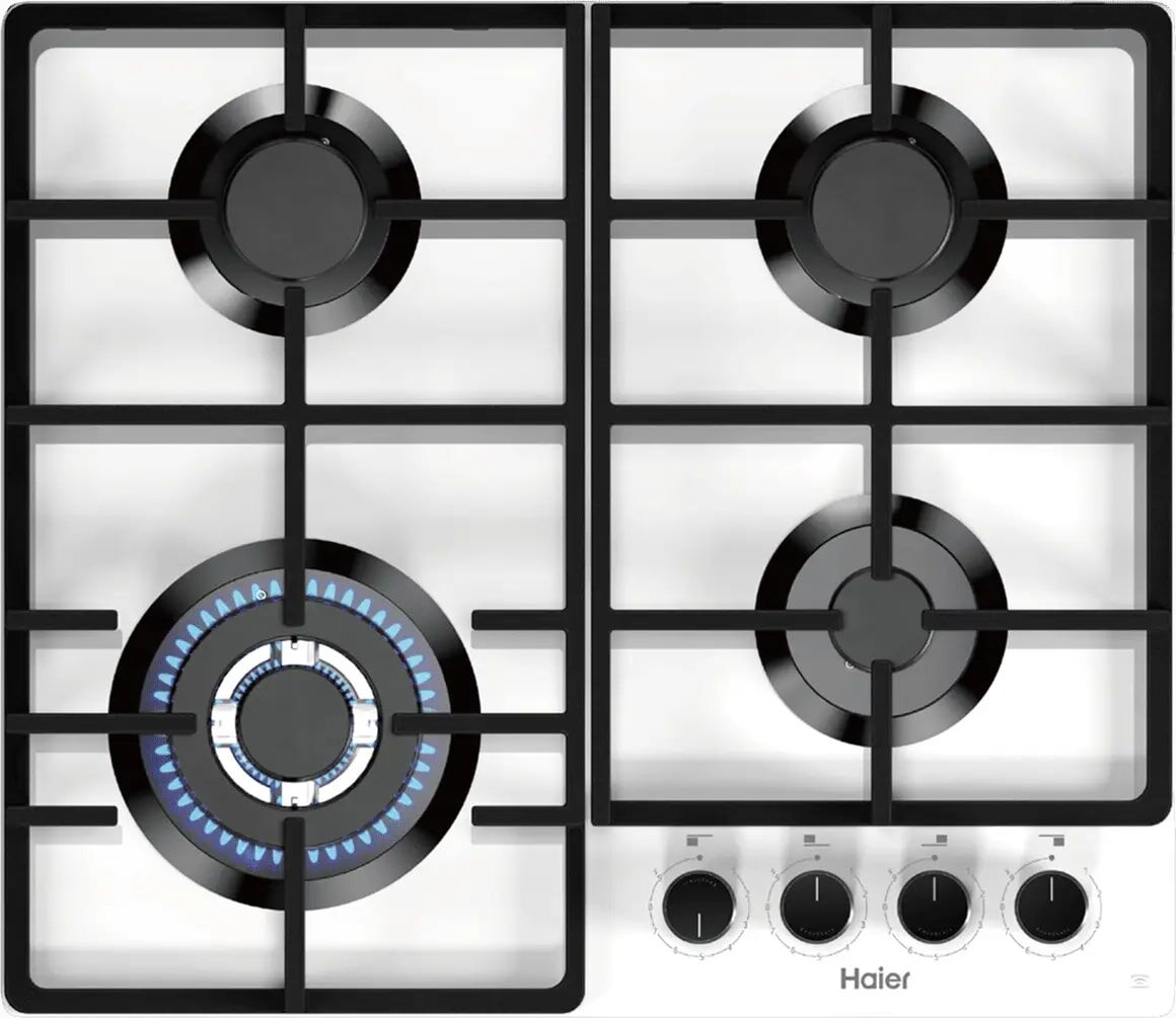 Газовая варочная панель Haier HHQ-G64CTHW – интеллектуальная синхронизация Hob2Hood и белый стеклянный дизайн