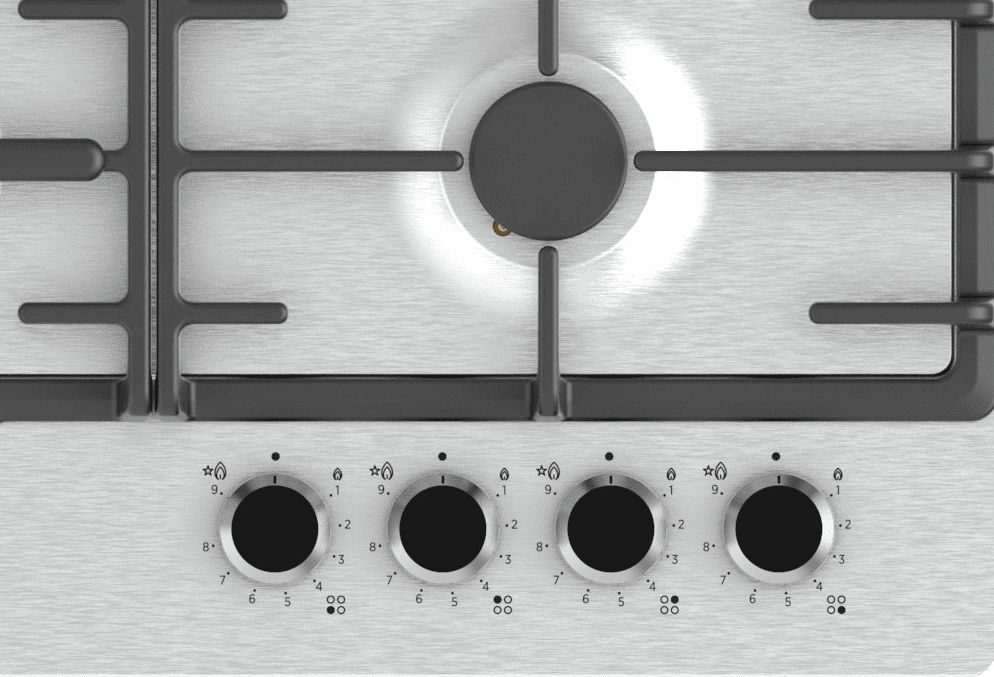 Система газ-контроля — автоматически перекрывает подачу газа на всех конфорках, если пламя гаснет, предотвращая его утечку и обеспечивая безопасность.