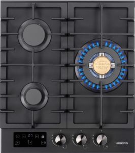 Газовая варочная панель Hiberg VM 4235 B – черная стеклокерамика, 3 конфорки и сенсорный таймер в 45 см