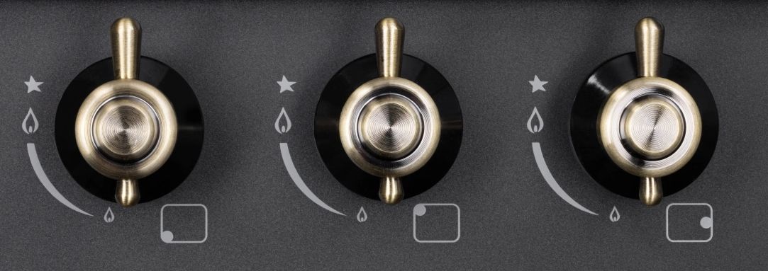 - 3 разноразмерные конфорки – включает мощную WOK-горелку (3.4 кВт) и 2 стандартные конфорки. Сбалансированная конфигурация для повседневных задач.