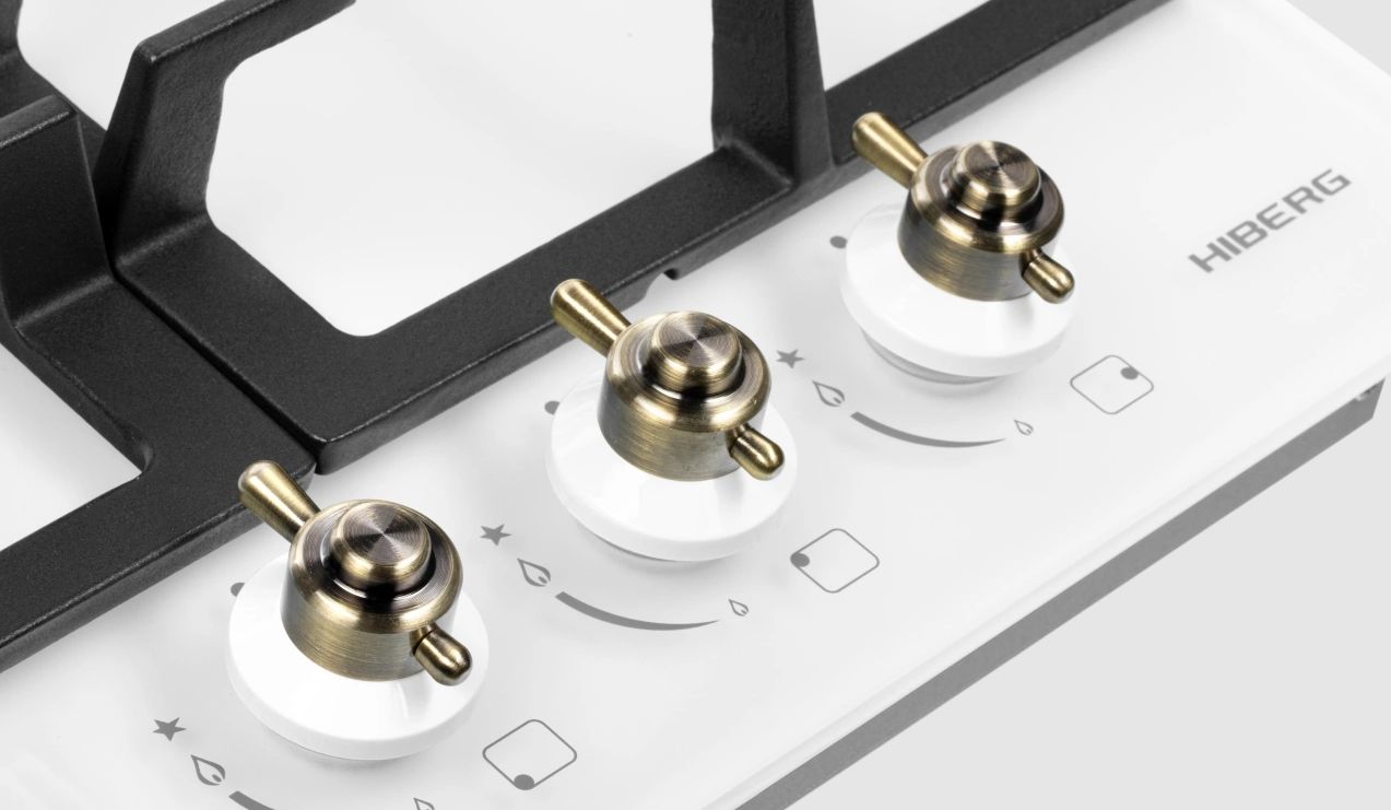 Газовая варочная панель Hiberg VM 4235 W – белая стеклокерамика, 3 конфорки и умный таймер в 45 см