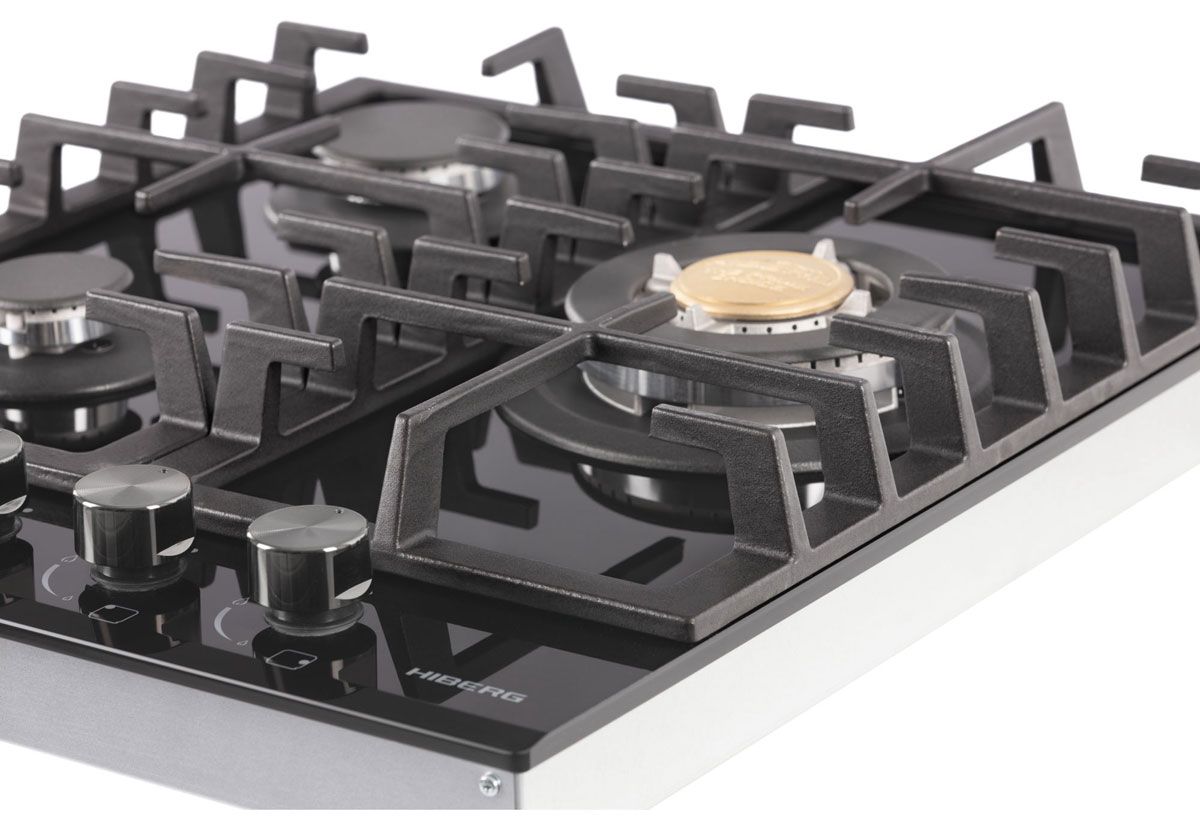 - Усиленные чугунные решетки – эргономичная конструкция снижает нагрузку на стекло, обеспечивает устойчивость тяжелой посуды и облегчает ее перемещение.