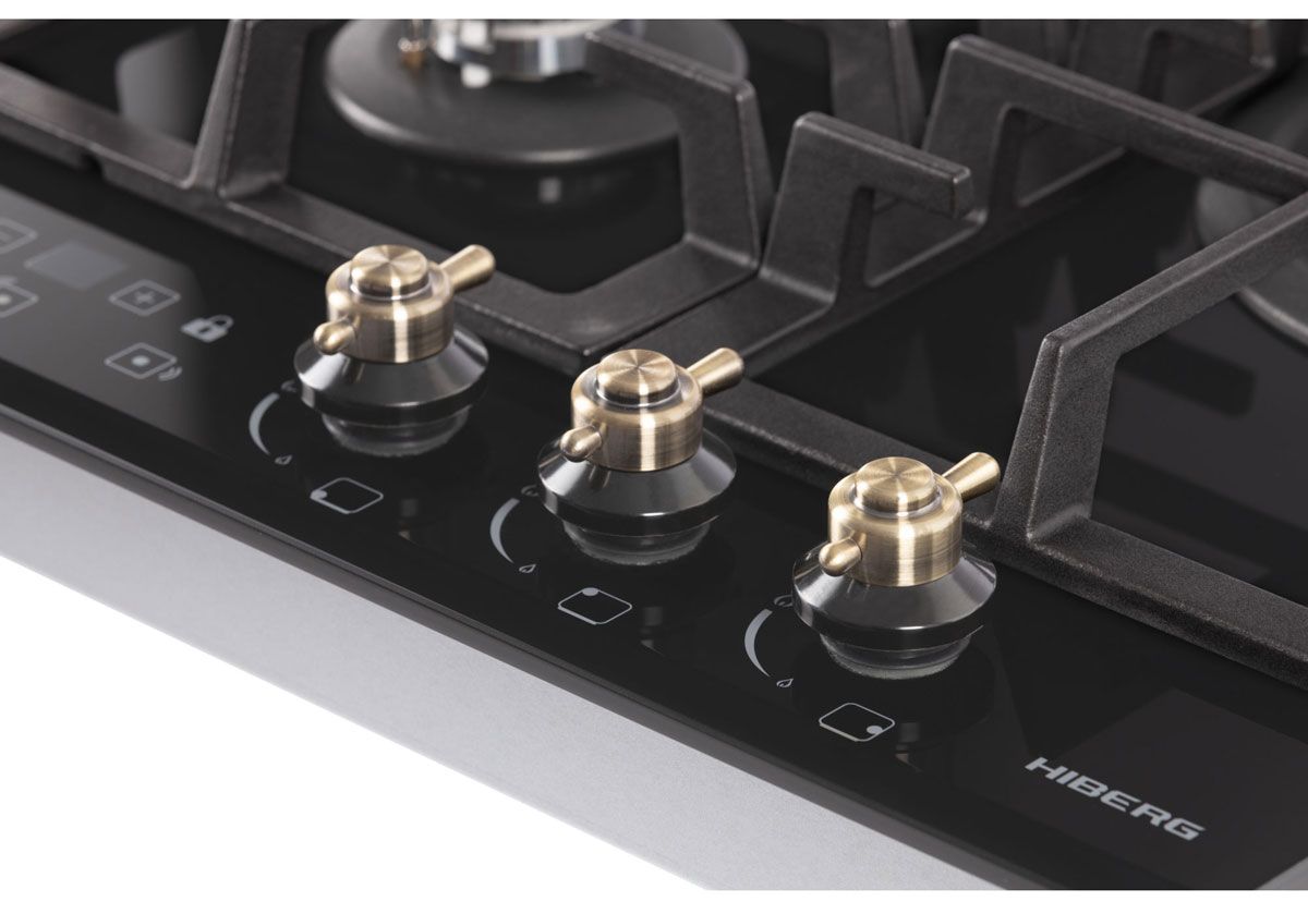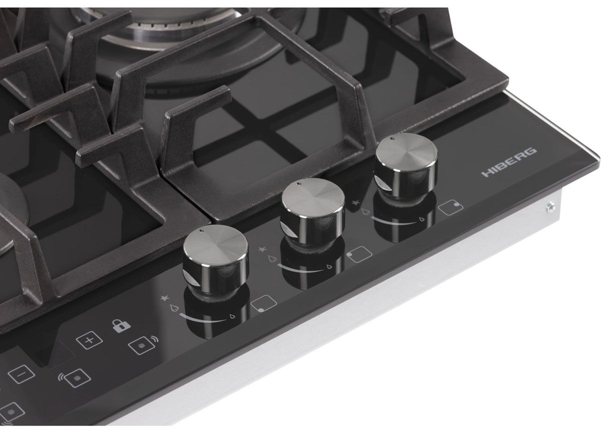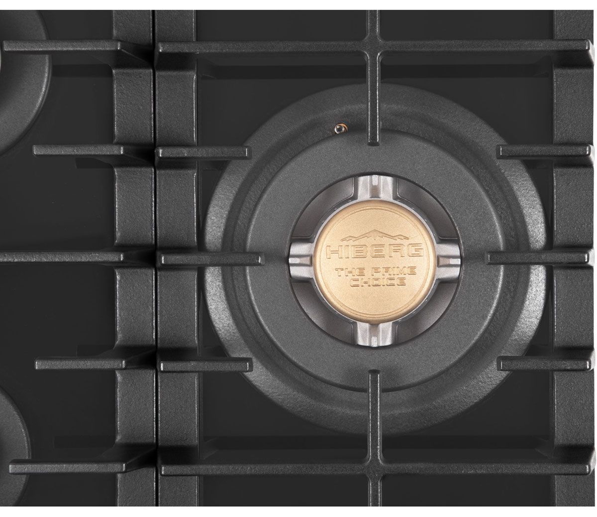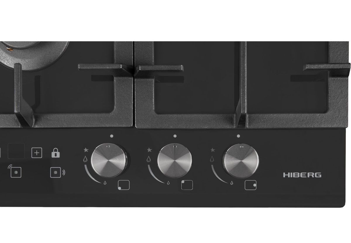 Газовая варочная панель Hiberg VM 4535 B – компактная черная панель с WOK-горелкой и интеллектуальным таймером