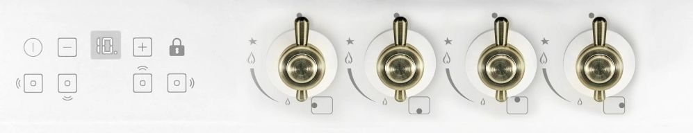 - Индивидуальный сенсорный таймер – программируемое автоотключение для каждой из 4 конфорок (1–99 мин). Точный контроль времени приготовления разных блюд со звуковым оповещением.