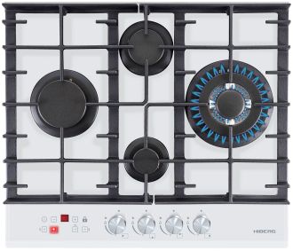 Газовая варочная панель Hiberg VM 6145 W – белое стекло, 4 конфорки и 6-уровневая регулировка