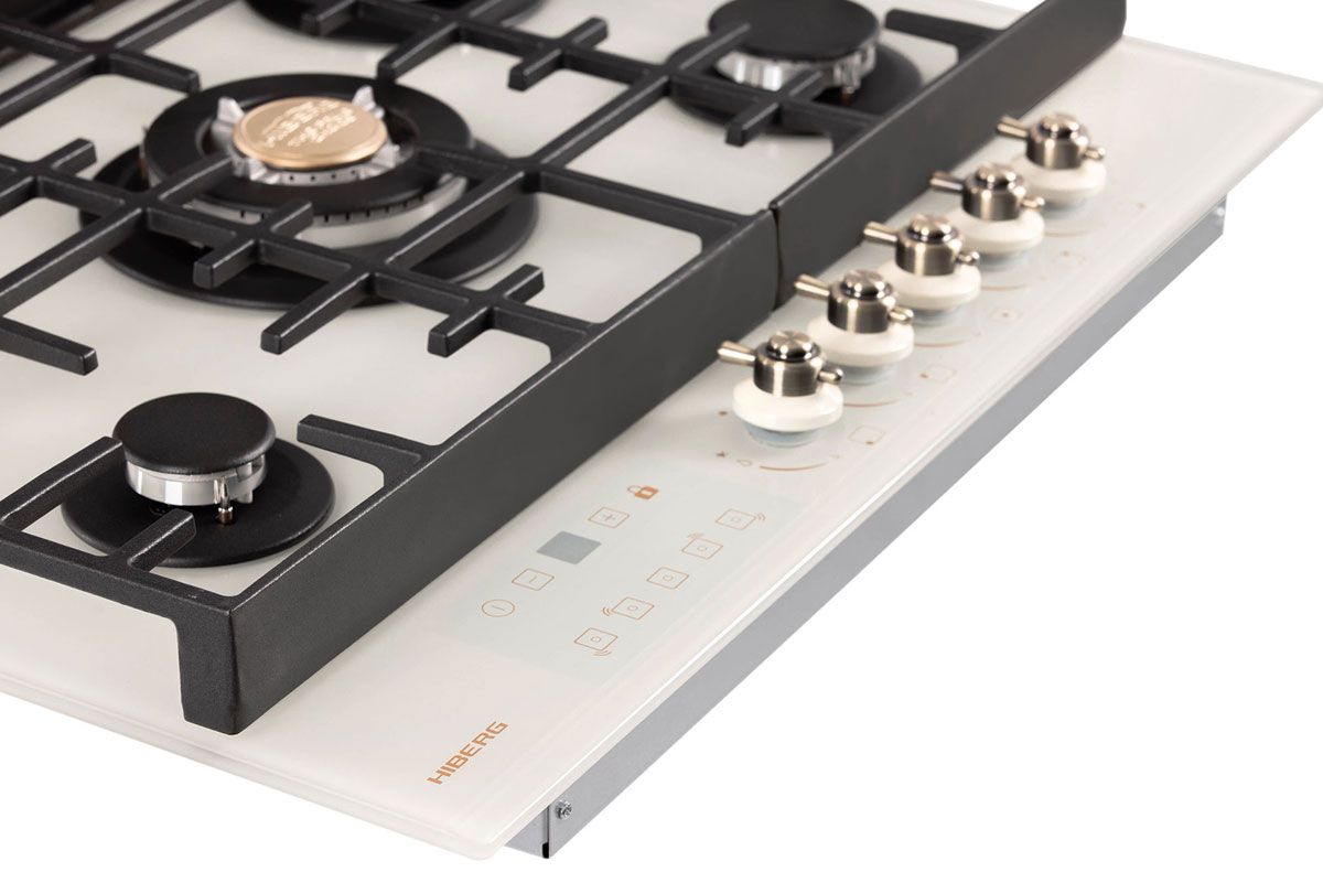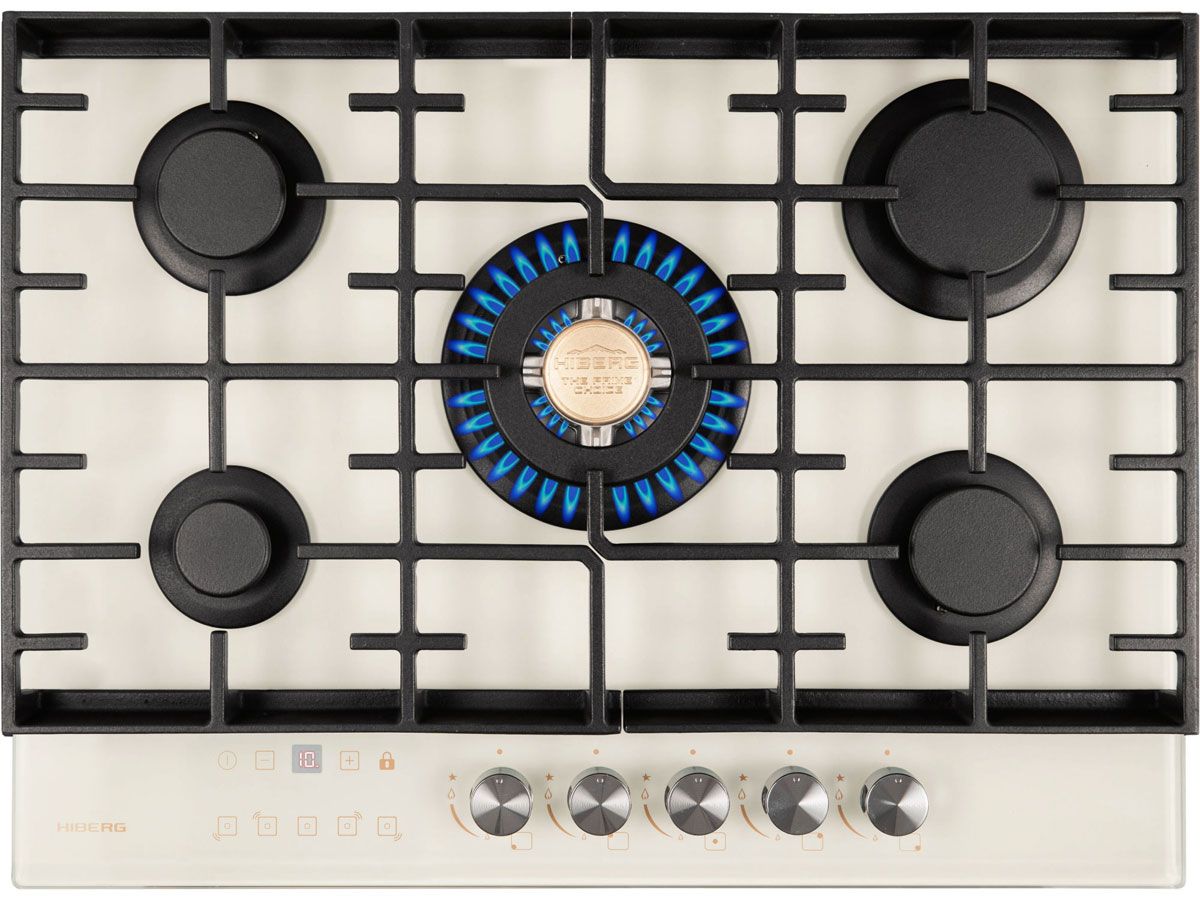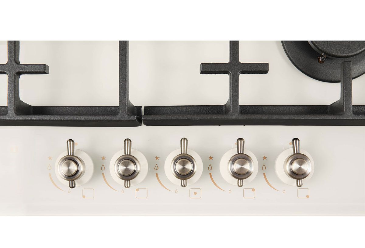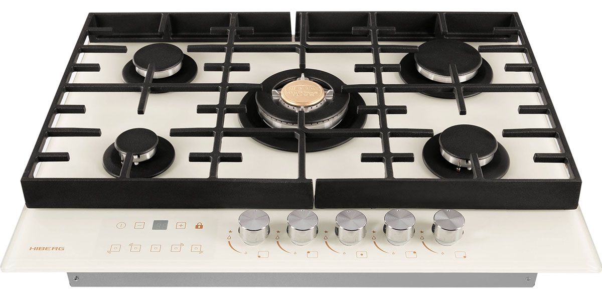 Газовая варочная панель Hiberg VM 7155 Y – бежевое стекло, 5 конфорок и ретро-стиль в 70 см