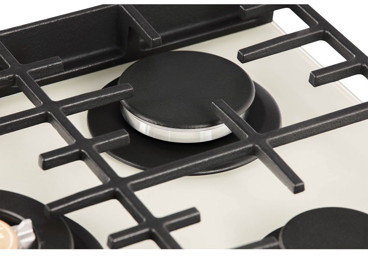 Газовая варочная панель HIBERG VM 7155 Y выделяется теплым бежевым цветом и элементами ретро-дизайна, предлагая полноценные 5 конфорок в компактном 70-см формате. Модель создает уютную атмосферу, не жертвуя производительностью и современными системами безопасности.
