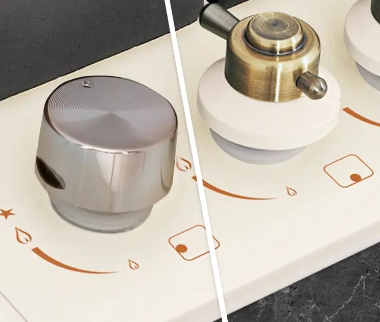 - Два комплекта дизайнерских ручек – сменные металлические переключатели в двух стилях (классика и минимализм) для адаптации под интерьер кухни.