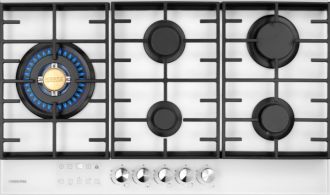 - 5 конфорок разной мощности – включает профессиональную WOK-горелку (3.4 кВт) и 4 конфорки различных диаметров для многозадачной готовки.