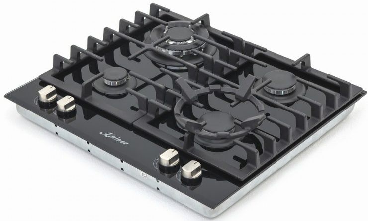 - 4 разнообразные конфорки — тройная турбогорелка (3.8 кВт), две стандартные (1.75 кВт) и экономная (1.0 кВт) для любых кулинарных задач