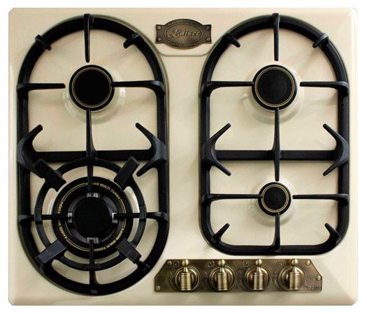 - 4 разнообразные конфорки — турбогорелка (3.0 кВт), две полубыстрые и одна вспомогательная для любых кулинарных задач
