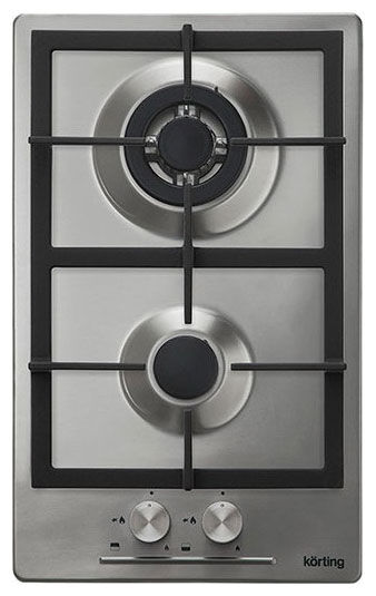 Узкая газовая варочная панель Korting HG 365 CTX – 30 см, 2 конфорки и WOK 2.5 кВт из нержавеющей стали