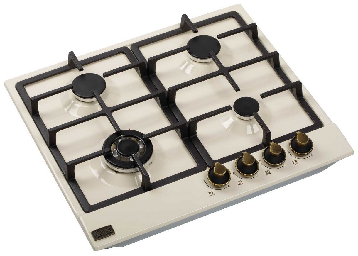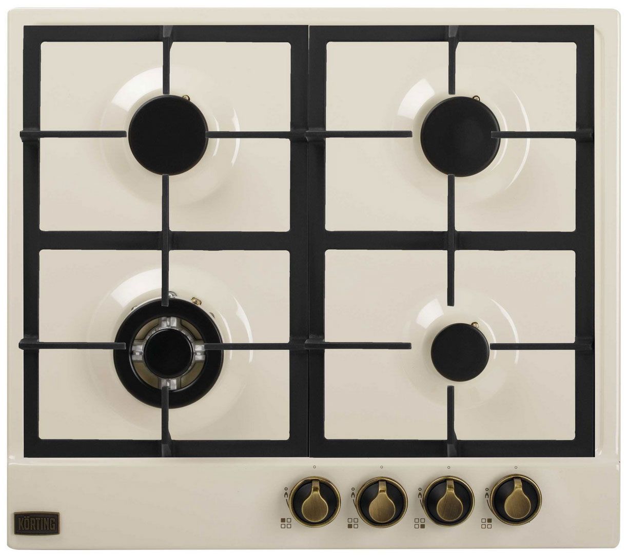 Встраиваемая газовая панель Korting HG 661 CTB в цвете «слоновая кость» с бронзовой фурнитурой сочетает очарование ретро-коллекции Provence и передовые технологии для комфортной готовки. Модель с эмалированной поверхностью оснащена чугунными решетками и входит в линейку независимо встраиваемой техники.