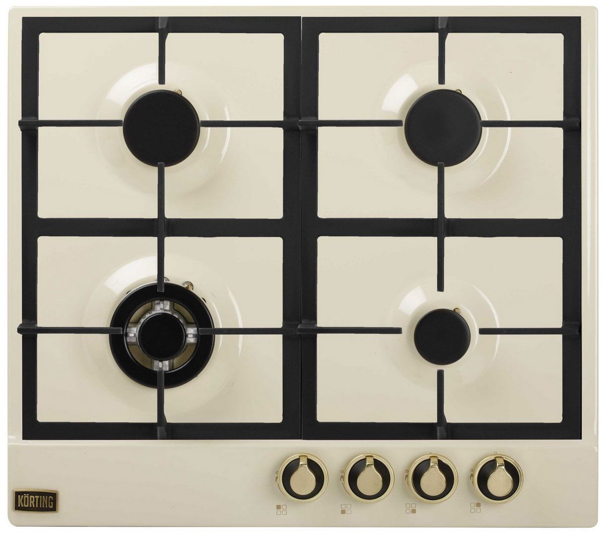 Встраиваемая газовая панель Korting HG 661 CTGB в цвете «слоновая кость» с позолоченными акцентами сочетает аутентичный шарм ретро-коллекции Provence и передовые инженерные решения. Модель с эмалированной поверхностью оснащена армированными чугунными решетками и входит в линейку премиальной независимо встраиваемой техники.