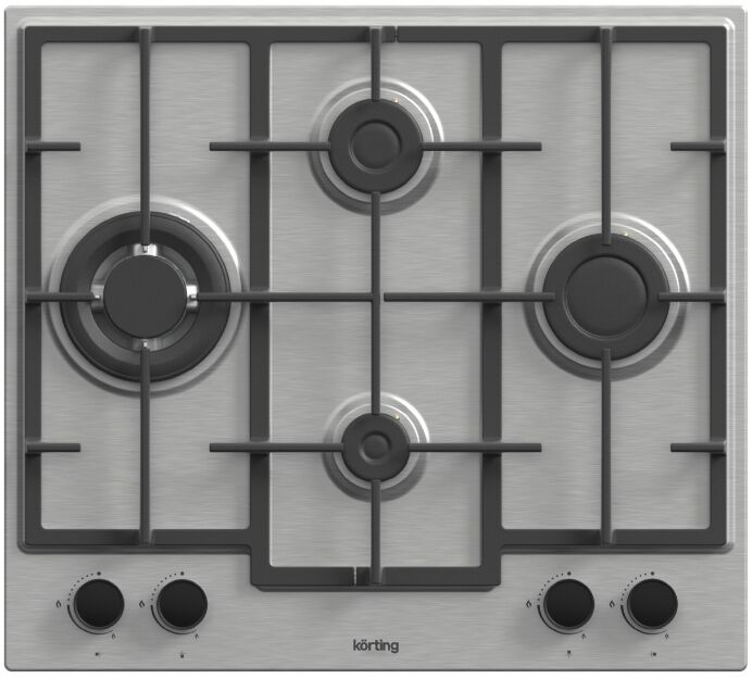 Газовая варочная панель Korting HG 688 CTX — профессиональная классика из нержавеющей стали с WOK-конфоркой